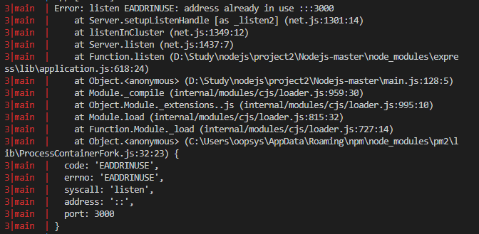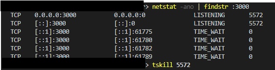 nodejs 공부를 하다보니 Error: listen EADDRINUSE: address already in use :::3000 에러가 자꾸 떴다.