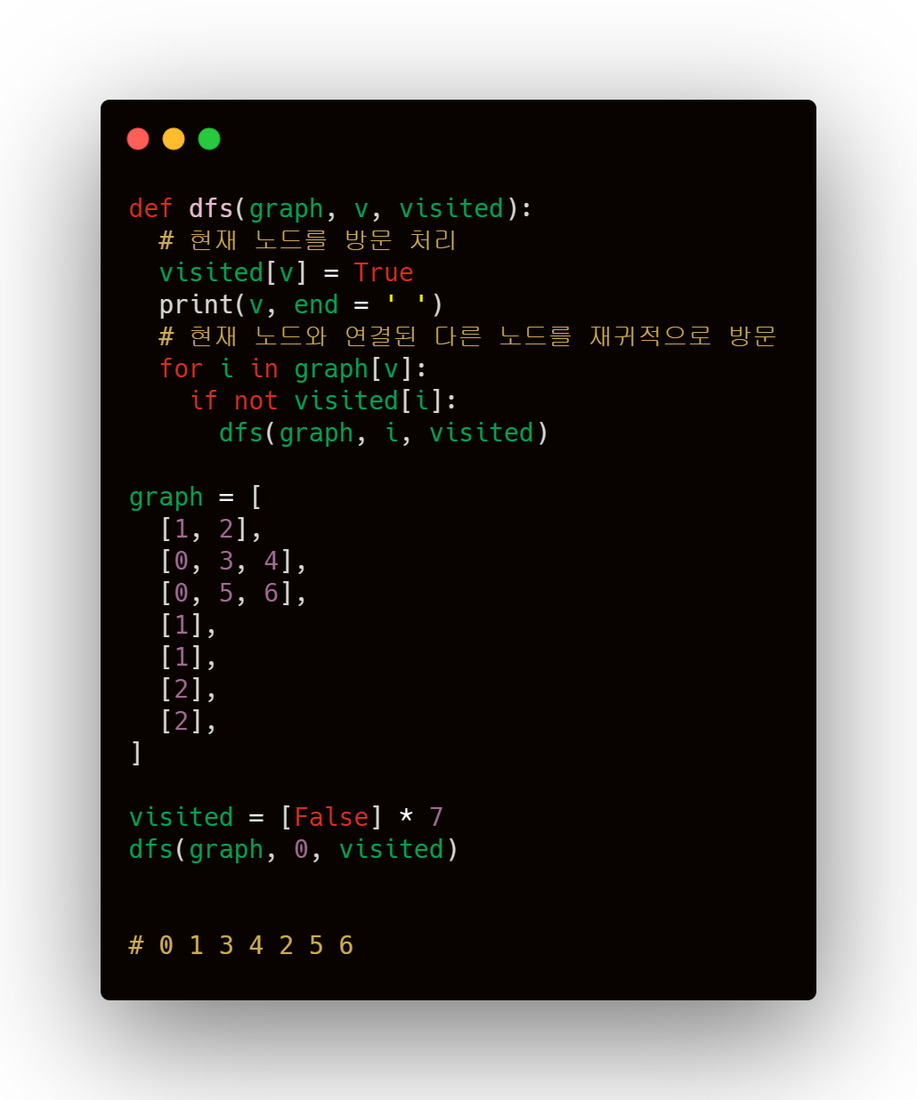 1. 탐색 시작 노드를 스택에 삽입하고 방문 처리 한다.
