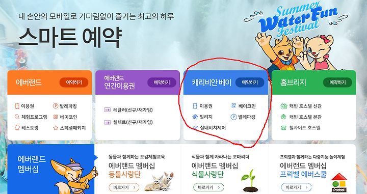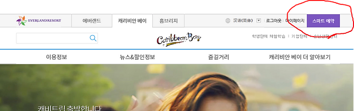 캐리비안베이 홈페이지를 들어가보면 오른쪽 상단에 스마트예약이라는 것이 있다.