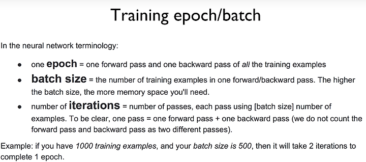 batch size : dataset이 큰 경우, 한 번에 할 수 없기 때문에 짤라서 학습을 시키는데 이 때 자르는 사이즈를 batch size라고 한다.