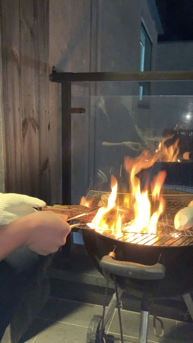우리는 바로 바비큐 파티를 했다.