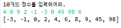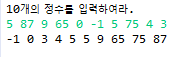 키보드로부터 정수를 10개 입력받아 배열에 저장하고 증가하는 순서로 정렬하고 이들을 출력하는 프로그램을 작성하라.